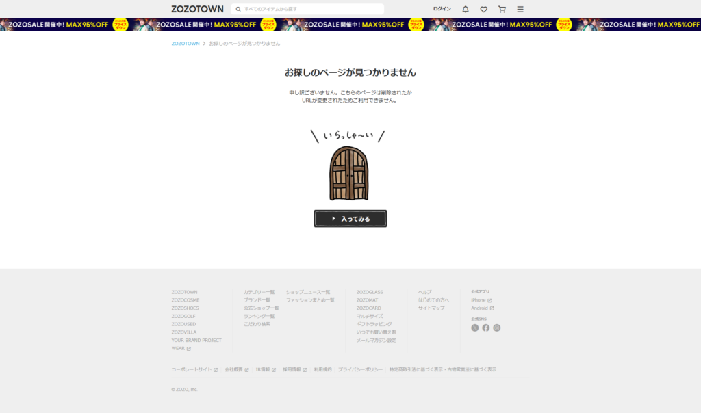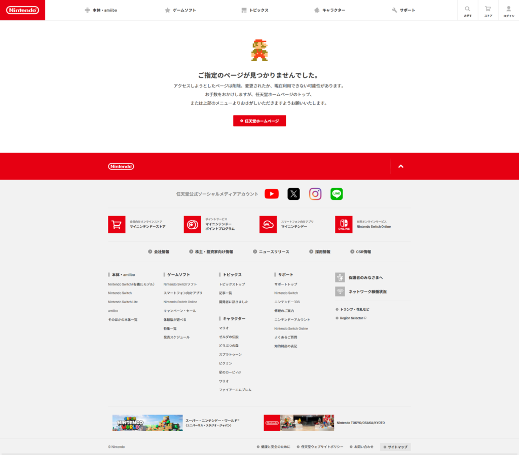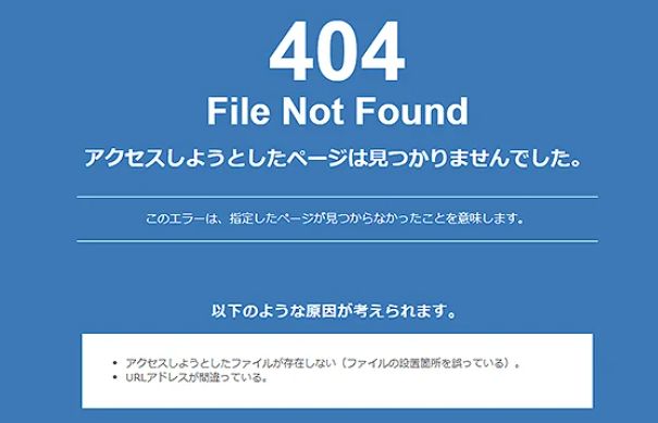 これは404エラーと呼ばれ、ページが削除されたり、URLが間違っていたりすると発生するエラーです。