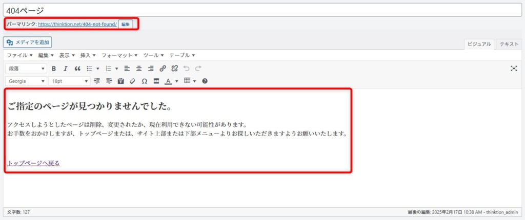 URL(パーマリンク)を「404」や「404-not-found」などに設定