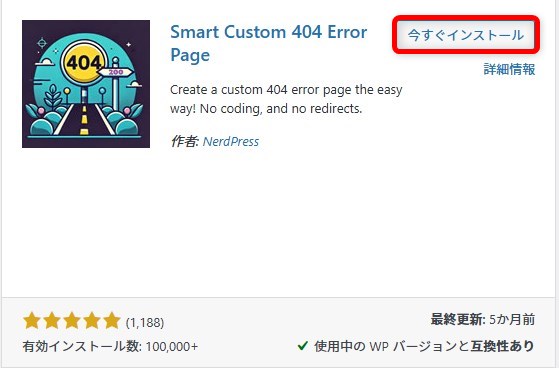 Smart Custom 404 error page」を検索し、インストール➡有効化。