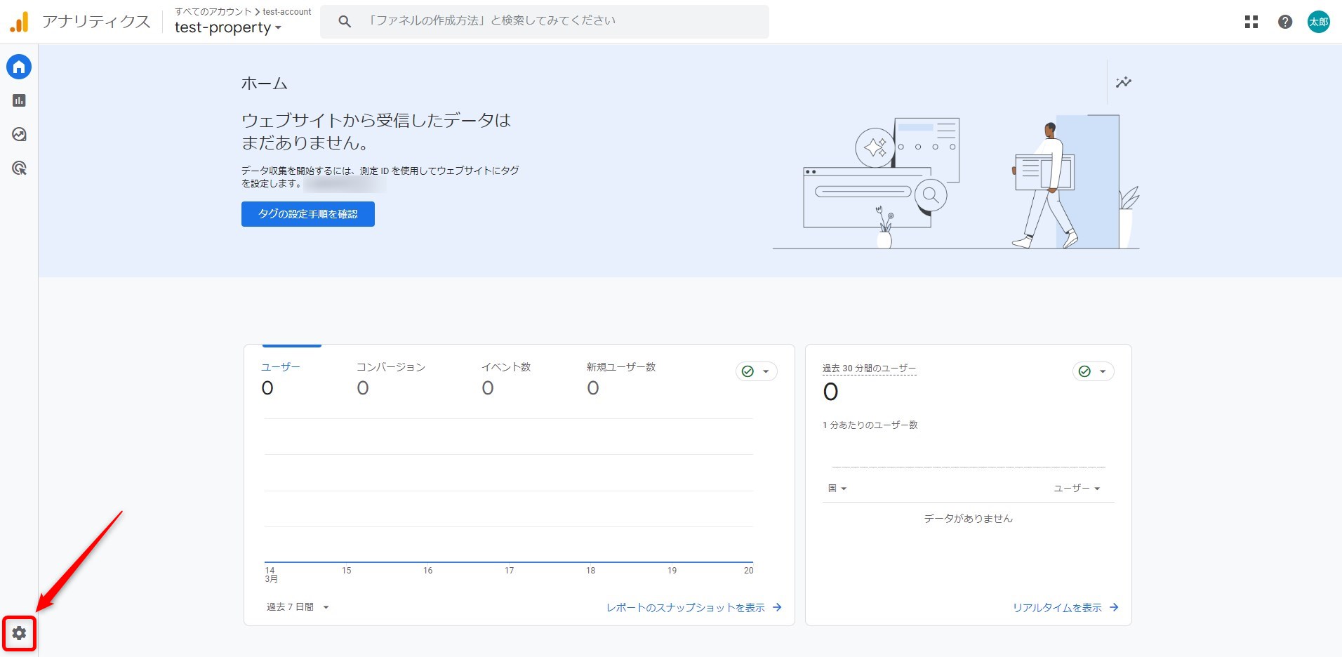 グーグルアナリティクス(GA4)の動作確認が済んだら、次に初期設定を行いましょう。