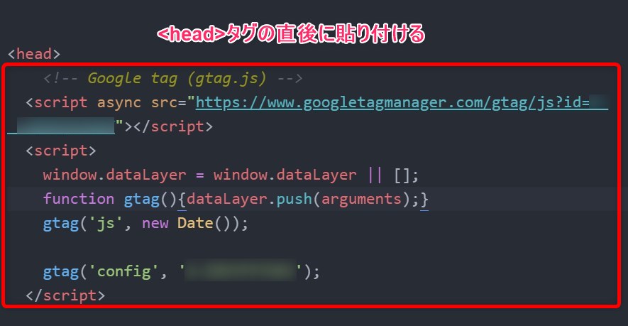 ウェブサイトのすべてのページにコード(<head>要素の直後)を貼り付けます。