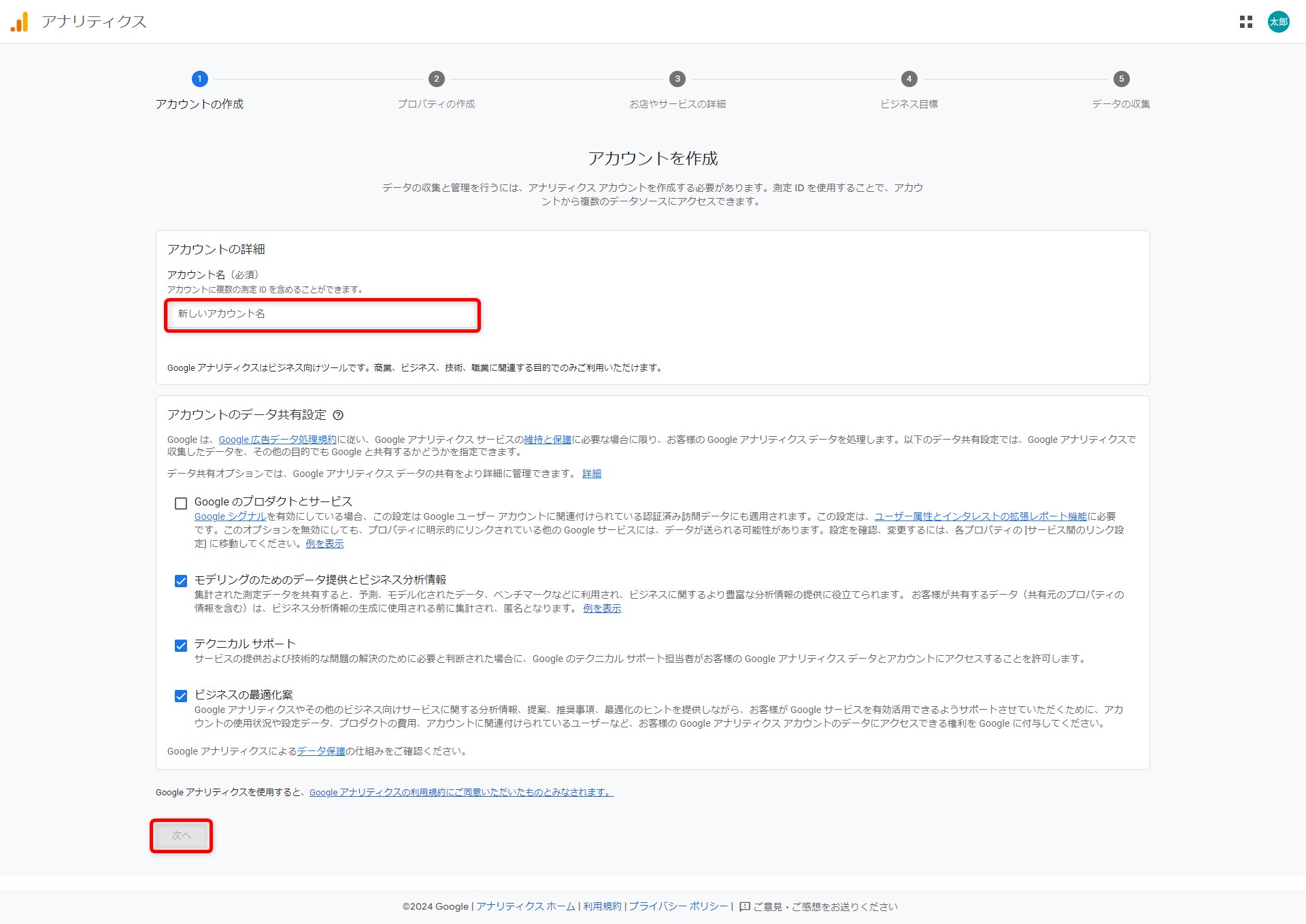 次に、Googleアナリティクスアカウントの開設を行っていきます。