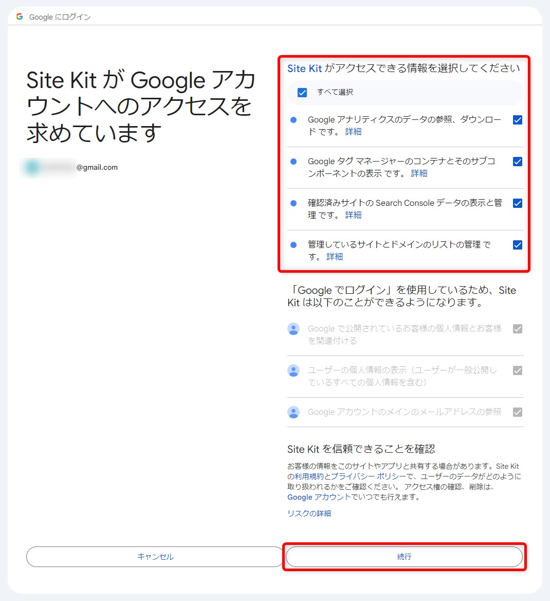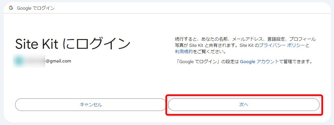 項目にチェックを入れて「Googleアカウントでログイン」をクリックします。