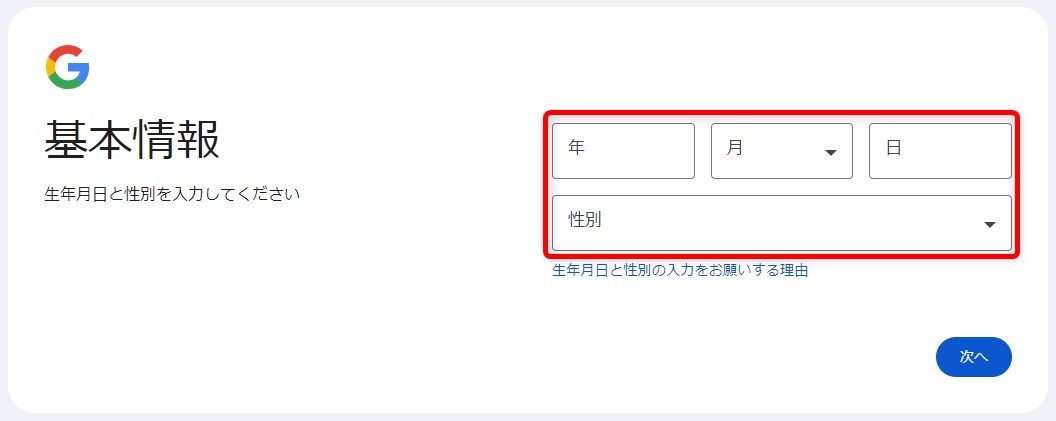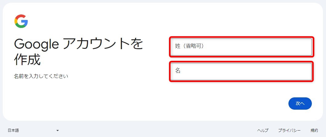 Googleアカウントの作成