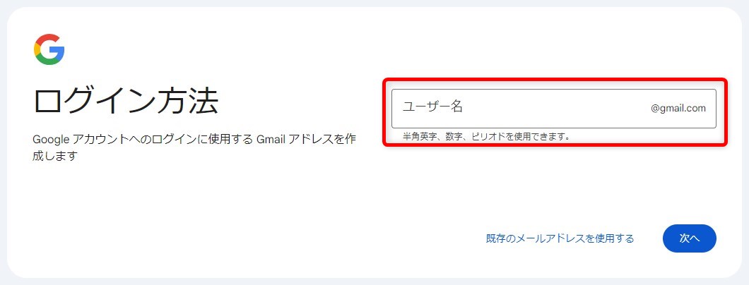 ログインに必要なGメールを作成します。