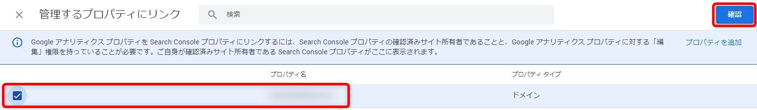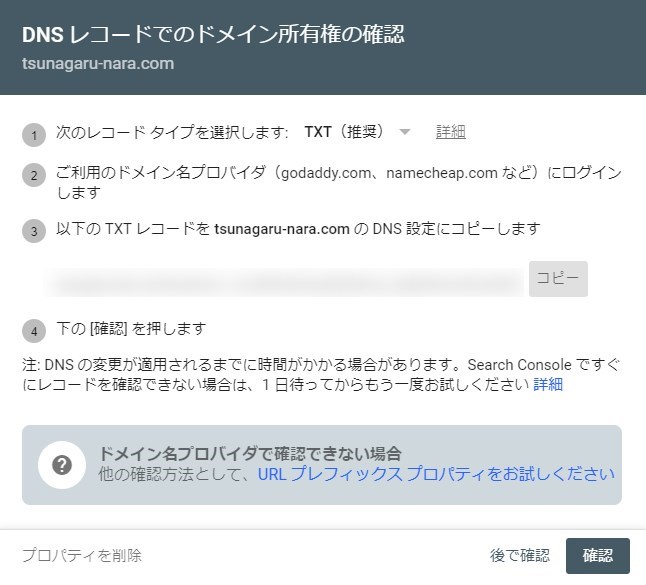 ドメインプロパティを選択した場合(ドメイン所有権の確認)