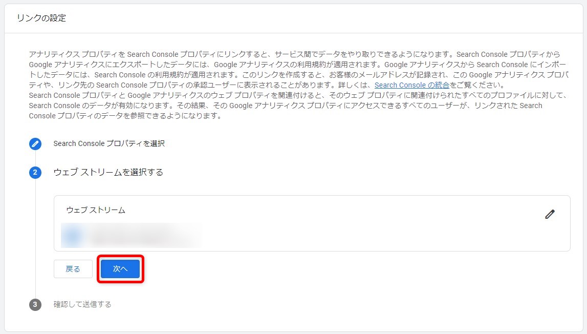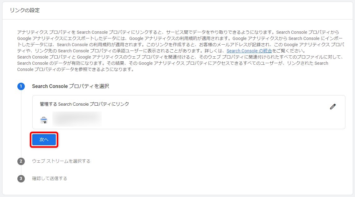 次に、プロパティタイプを選択し、URLを入力した上で「続行」をクリックします。