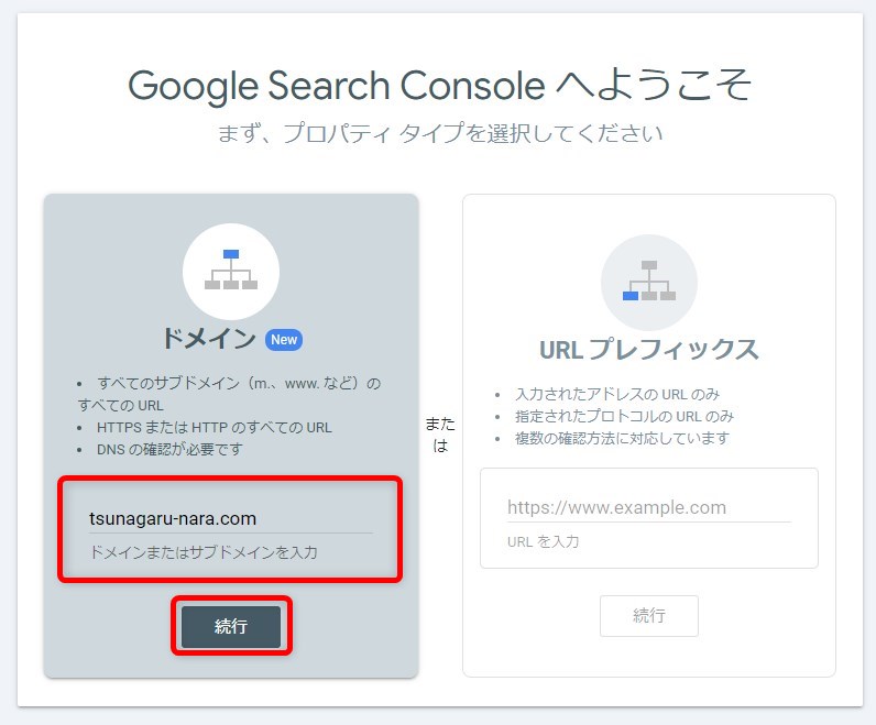 基本的にGoogleは「ドメインプロパティ」の使用を推奨しているので、特別な事情がなければ「ドメイン」を選択すると良いでしょう。