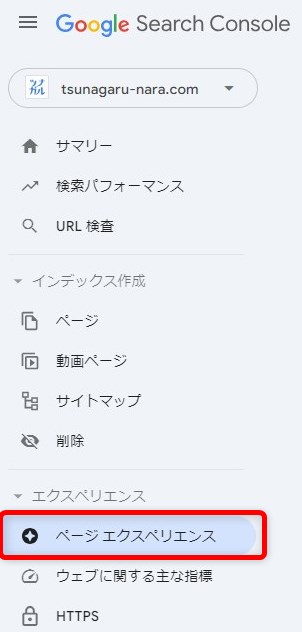 サーチコンソールの「ページエクスペリエンス」をクリックすることで確認できます。