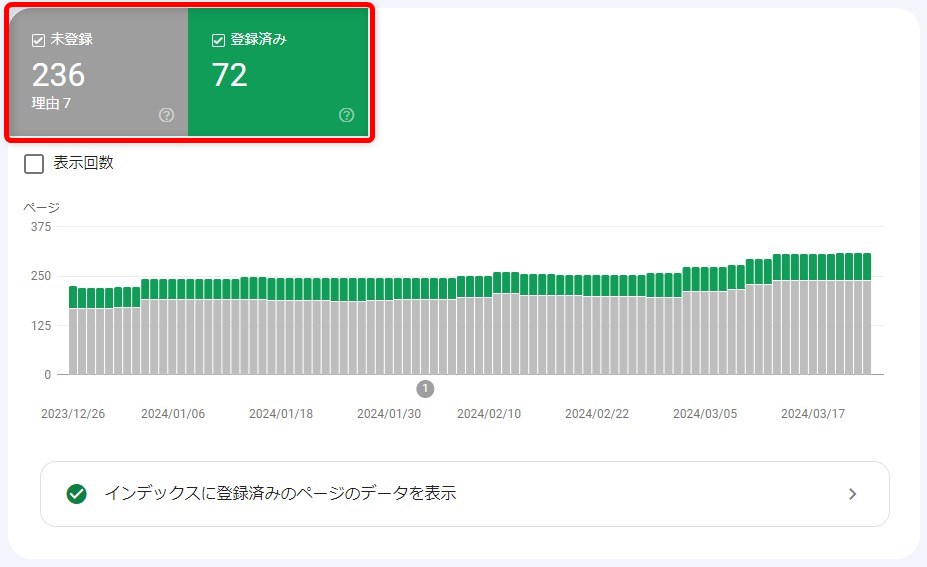 インデックス状況の確認:Googleがサイトのどのページをインデックスしているか分かります。