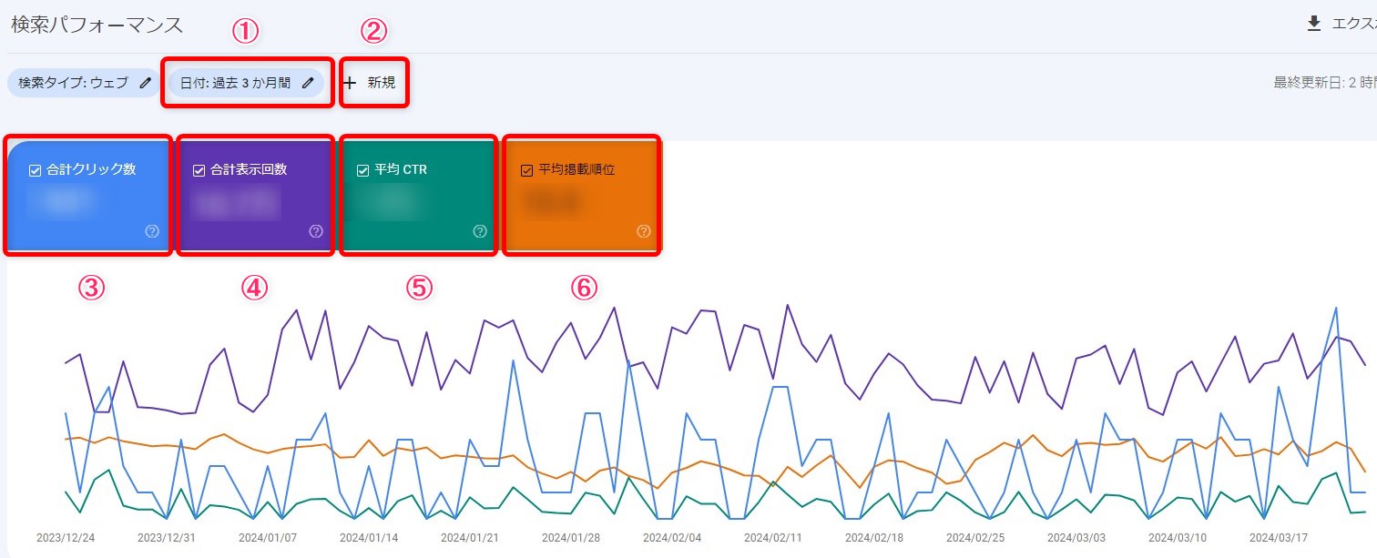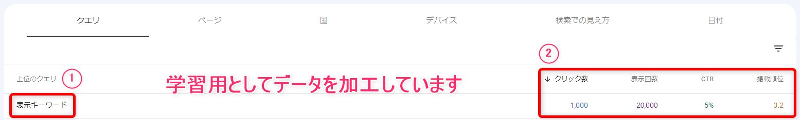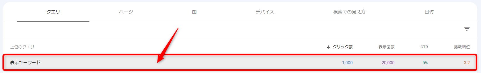 主な指標:表示回数・クリック数・平均掲載順位・平均CTR