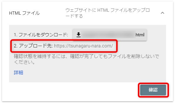 ②FTPソフト等で、ダウンロードファイルを指定URLにアップし、「確認」をクリックします。