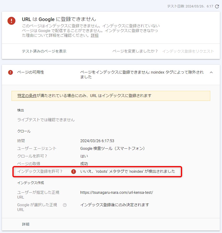 サーチコンソールでは登録されなかった理由の詳細も確認できるので、必要に応じて対応しましょう。