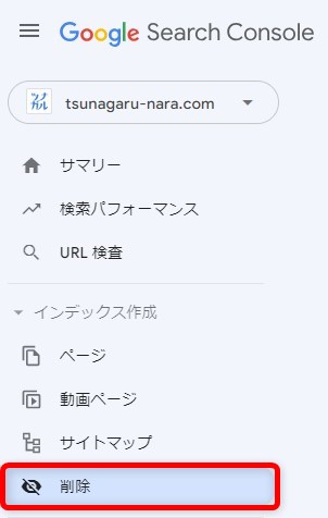 サーチコンソールの「削除」をクリックします。