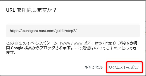 選んだページが約6ヶ月間、Google検索に出なくなります。
