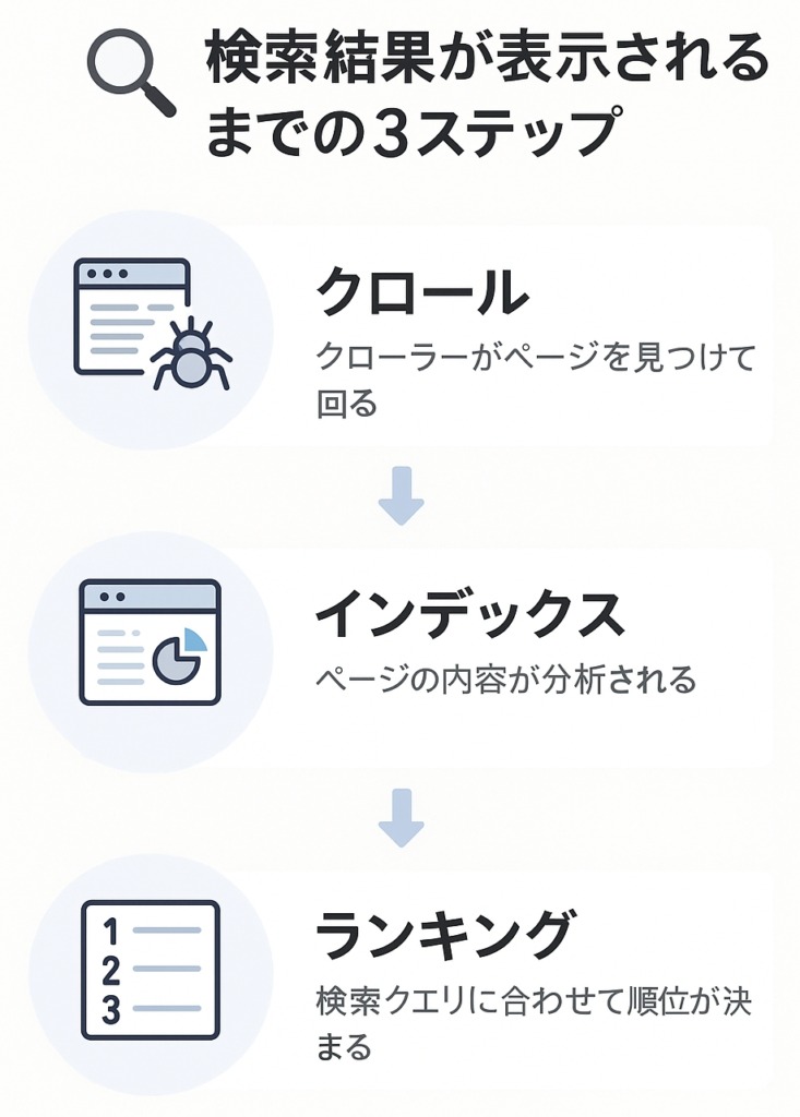 このしくみを理解すれば、自社のページがなぜ検索上位に出ないのか、どう改善すべきかが見えてきます。