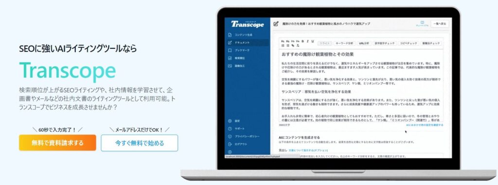 • トランスコープ:GPT-4を活用したAI校正+SEOライティング対応