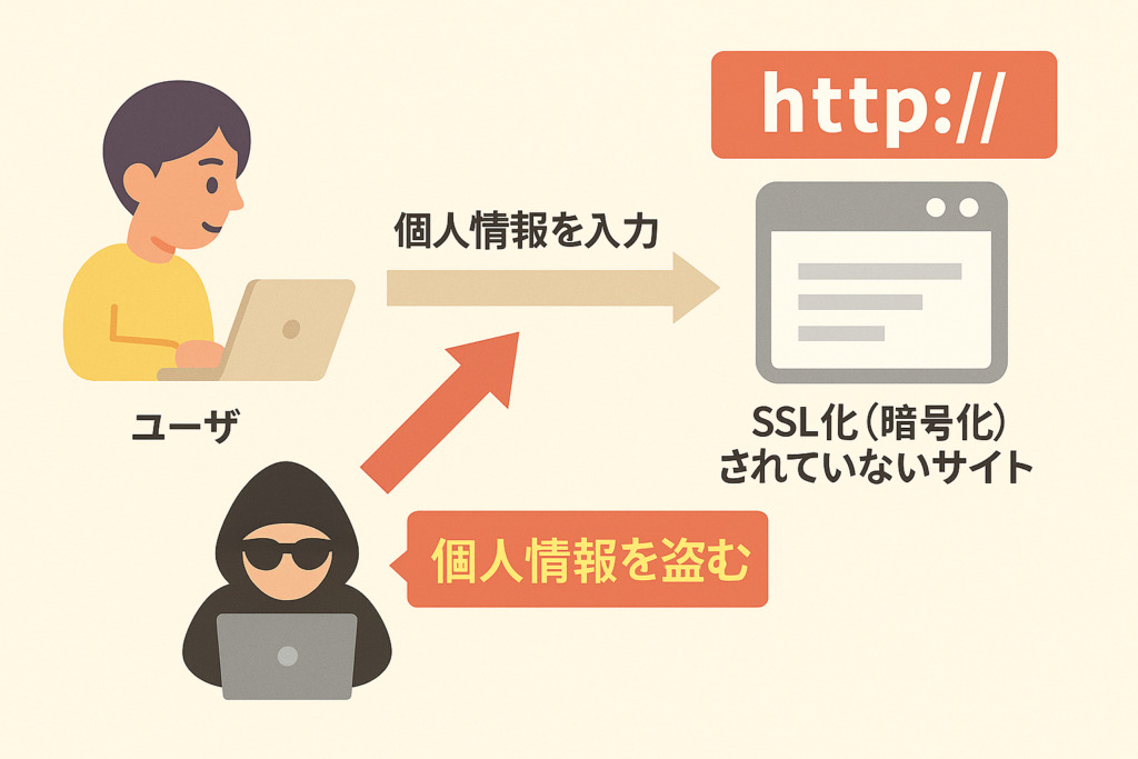 SSL化とは、Webサイトとユーザー間の通信内容を暗号化し、第三者による盗聴や改ざんを防ぐ仕組みです。