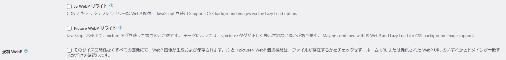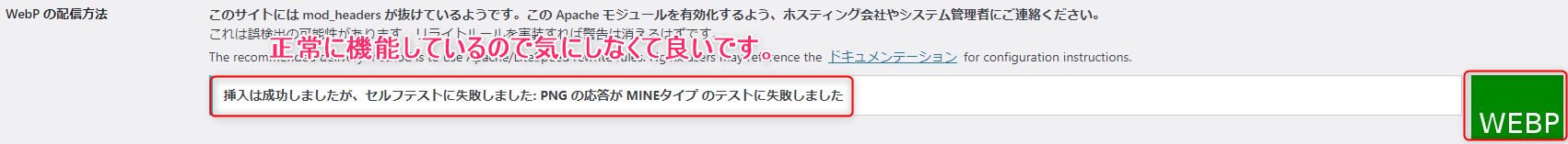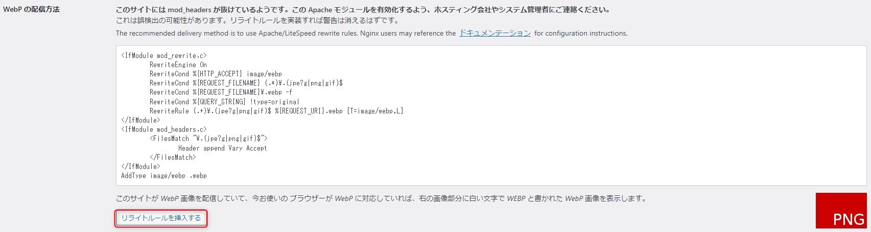 WebPの配信方法:リライトルールを挿入するをクリック
