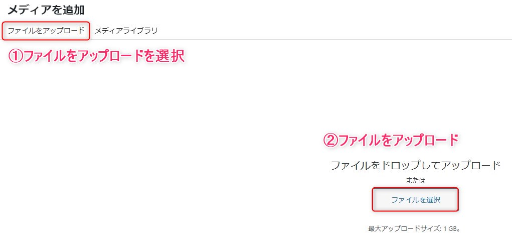②「メディアを追加」をクリック。