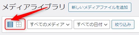 ②「メディアライブラリ」の表示形式を「リスト表示」に切替します。