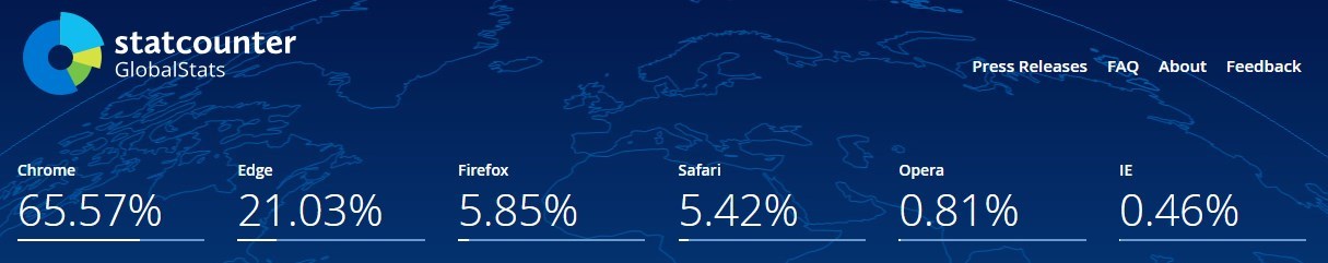 2023年のIEの使用率は0.46%なんだ。