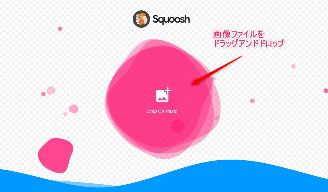 まず、Squooshのウェブサイトにアクセスして、画像ファイルをドラッグ&ドロップするだけなんだ。