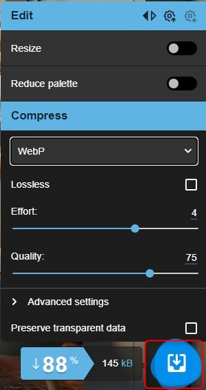 「Squoosh」というGoogleが提供するWebアプリがおすすめです。