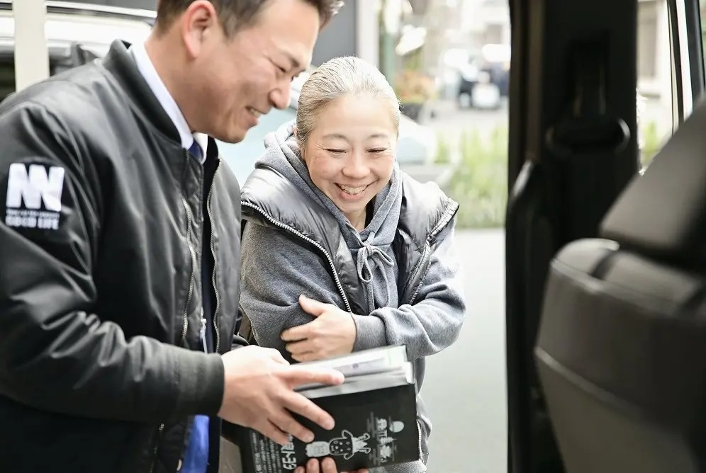 お客様のご自宅近くに車を停め、スタッフの方が納車の対応をする様子をカメラに収めていました。5ヶ月待ちの新車でした。車が到着した瞬間、お客様の娘さんが飛び跳ねて喜んでくれました。その場にいた全員が、思わず笑顔になった瞬間でした。